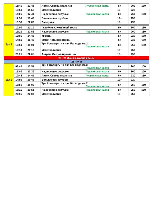 Кино­те­атр "Прос­пект" Канаш - рас­пи­са­ние пока­зов с 19 по 25 июня 2025 года