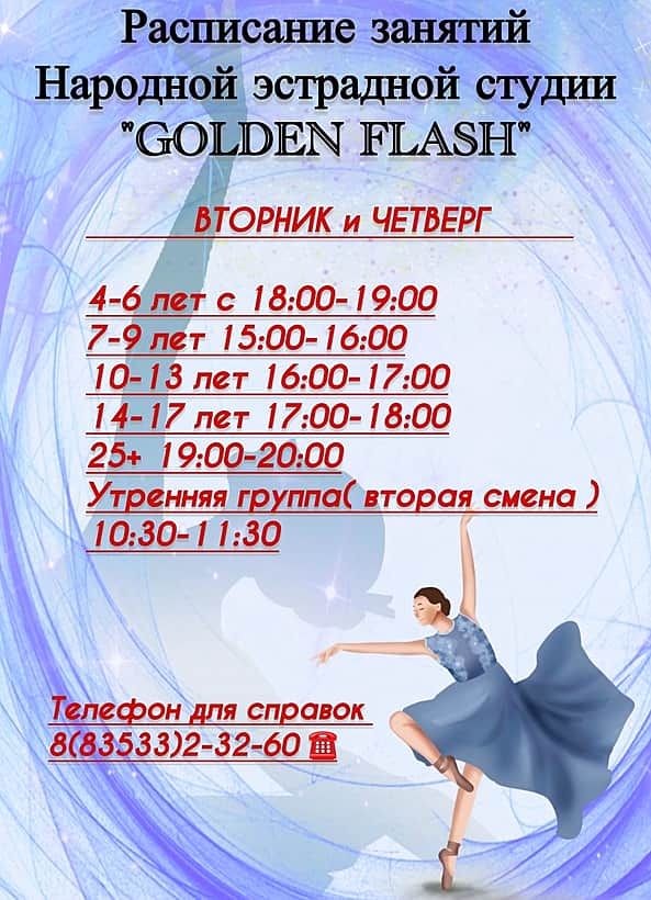 Расписание народной эстрадной студии "GOLDEN FLASH" (городской Дворец культуры)