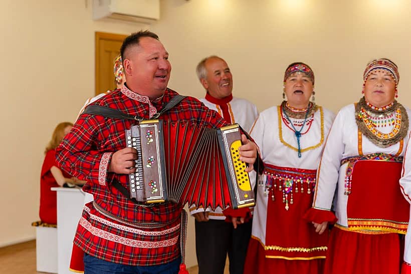 Людмила Варфоломеевна является участницей народного ансамбля «Татмаш ен» и этот дружный коллектив поздравил юбиляров своим незабываемым выступлением.