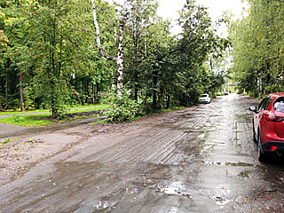 Фотография объекта недвижимости и улицы с уровня земли.